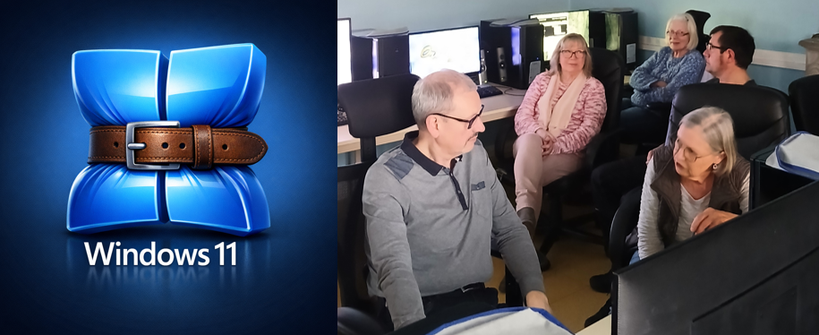 Nous avons commencé la migration vers W11 du PC portable d’une adhérente (Françoise), vous la voyez croiser les doigts sur la photo 😉 . Nous avons au préalable regardé les pré-requis (modèle de processeur, quantité de RAM, puce TMP ?, espace disque disponible). Les précautions avant la migration étaient prises : sauvegarde des données complète, image disque avec Acronis, etc. La migration s’est bien déroulée et dans les temps avant la fin de séance. Ouf ! Jeudi prochain on recommence avec une VM pour que les adhérents puissent tester par eux-mêmes l’ensemble des opérations 🙂